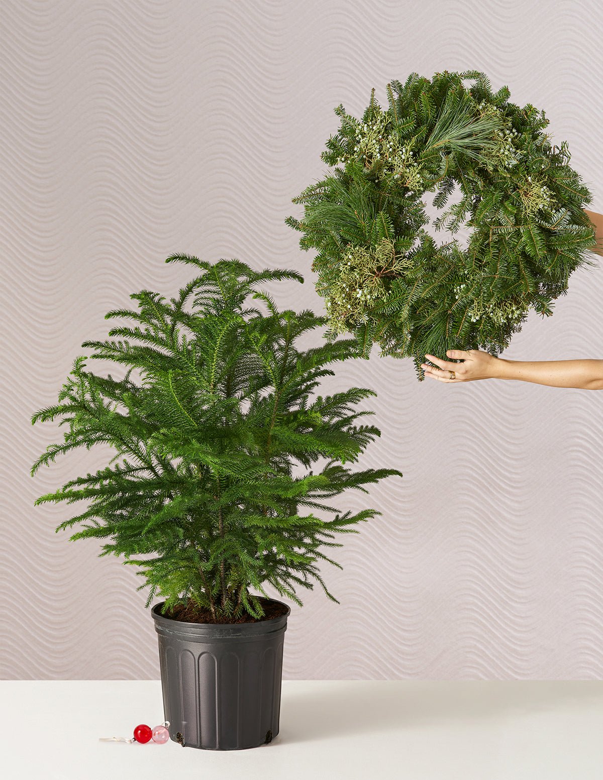If you’re getting your home ready for some holiday festivities, look no further than this limited-edition duo featuring our fragrant Evergreen Wreath and live holiday tree alternative, the Large Norfolk Island Pine. Twinkle lights are not included, but are strongly encouraged.