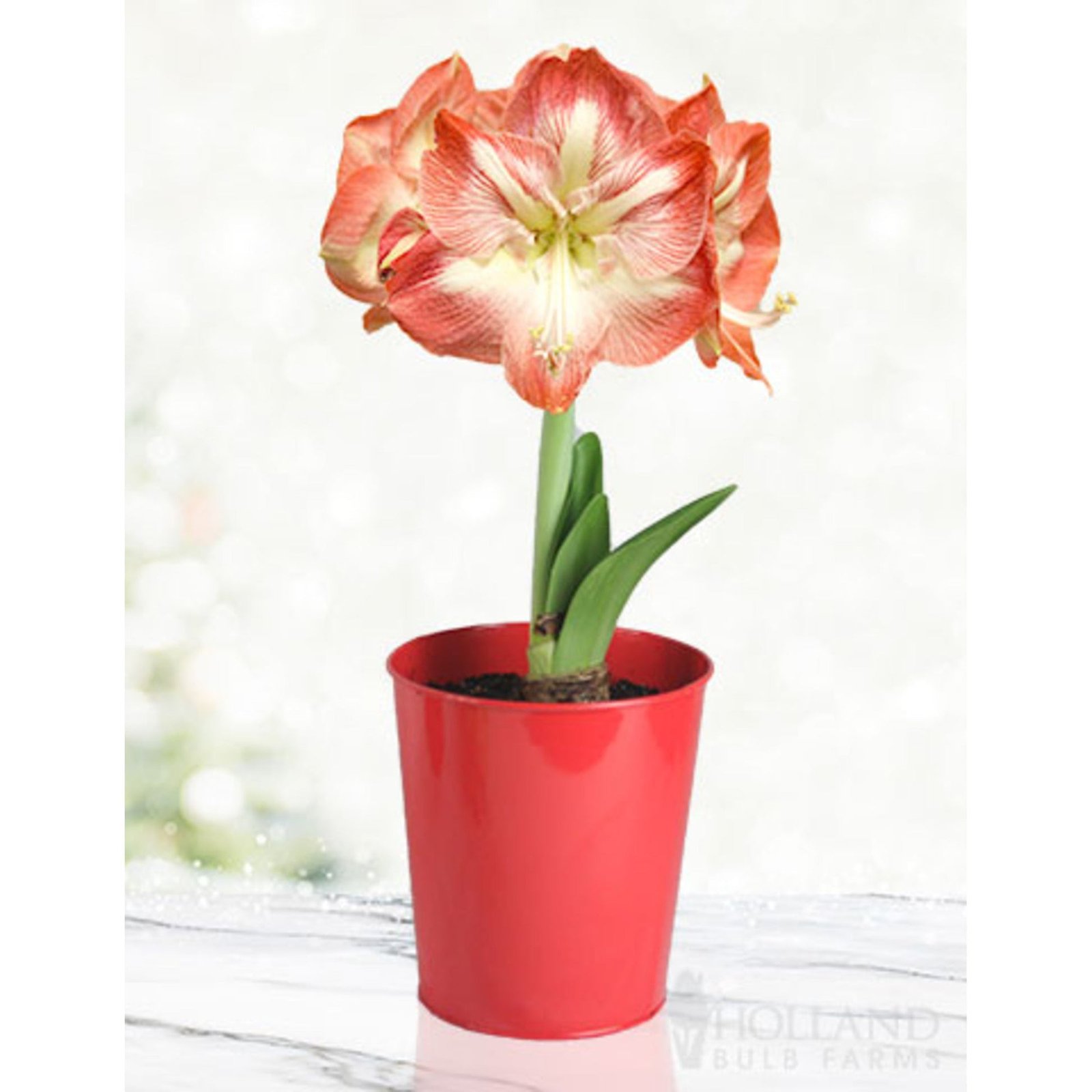 Bring the vibrant red and white blooms of the ‘Minerva’ Amaryllis right into your home this season with our complete, easy-to-use kit. Known for its stunning, star-shaped flowers and lush green foliage, this Amaryllis will add a bold splash of color to any indoor space.
